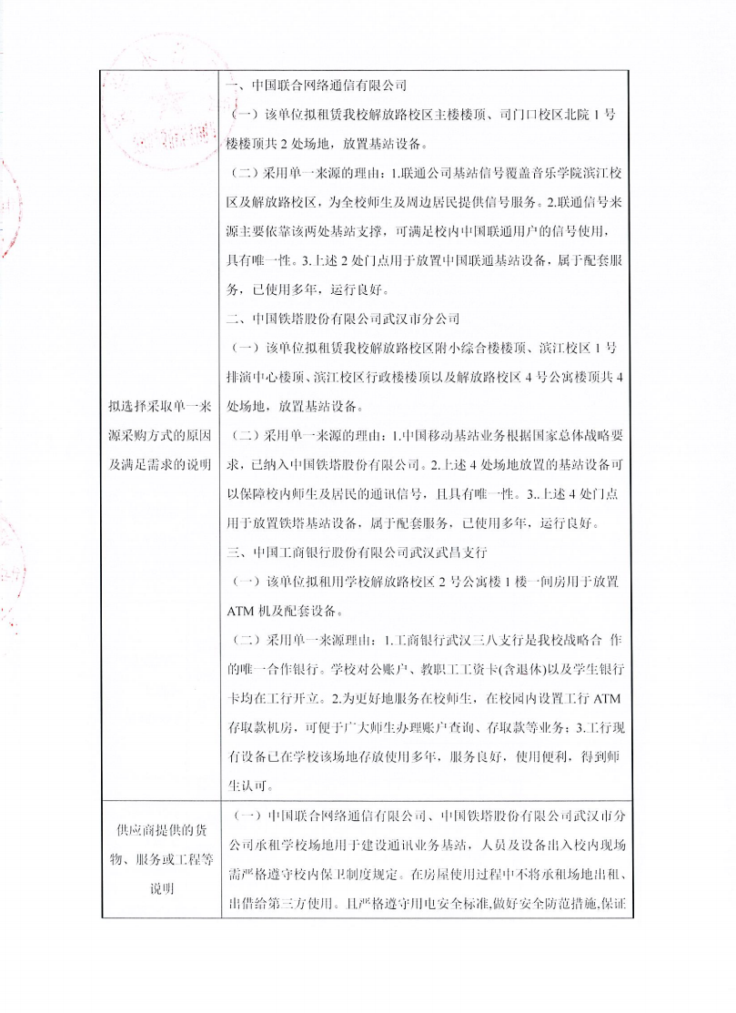 (1)該單位擬租賃我校解放路校區附小綜合樓樓頂、濱江校區1號排演中心樓頂、濱江校區行政樓樓頂以及解放路校區4號公寓樓頂共4處場地,放置基站設備。